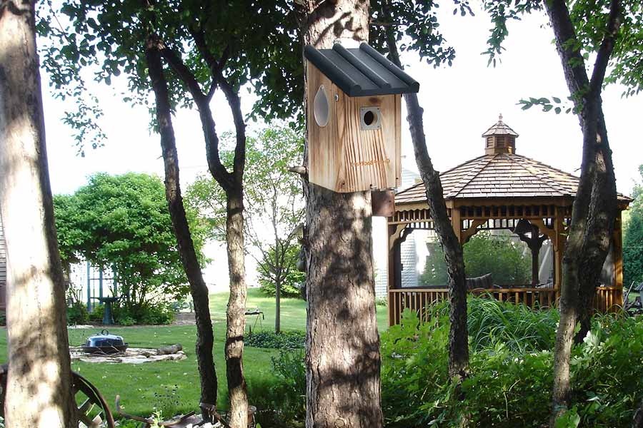 Another great way to invite birds into your yard is to make or provide a feeding station or water feature. Adding backyard bird feeders,standingor hanging birdbaths, andbirdhouses is a simple way to make your backyard or patio more bird-friendly.
