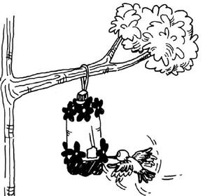 Hummingbirds, on the other hand, love to drink nectar from the native plants in our backyard, as well as from hummingbird feeders, especially in the winter. Fill glass hummingbird feederswith homemade sugar water mixed at a ratio of four to one (or three to one during the winter) as instructed below:
