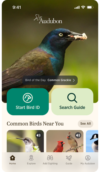 The Audubon Bird Guide is a free and complete field guide to over 800 species of North American birds, right in your pocket. Built for all experience levels, it will help you identify the birds around you, keep track of the birds you’ve seen, and get outside to find new birds near you.