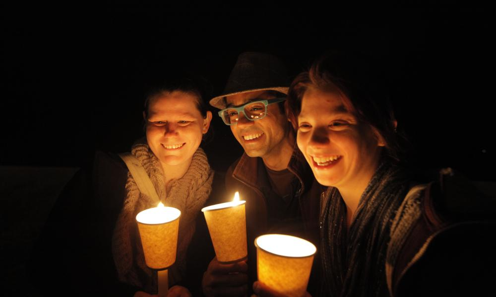 Mark the “castle” with lanterns or candles in holders. Place the “treasure” in the middle of this area. You can decorate the treasure with glow sticks. Divide children into teams. One team defends the castle while the other tries to sneak up and capture the treasure. After one team is successful, the teams switch roles.